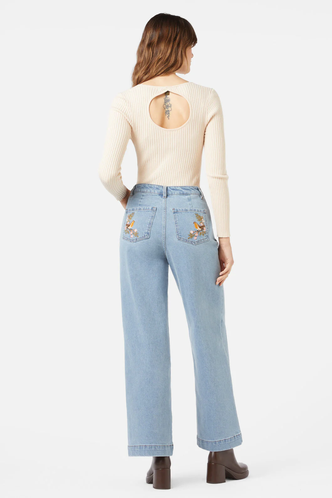 Long sleeve fitted ribbed knit top with a sweet cut out feature at the back and a rounded neckline made from a cotton blend