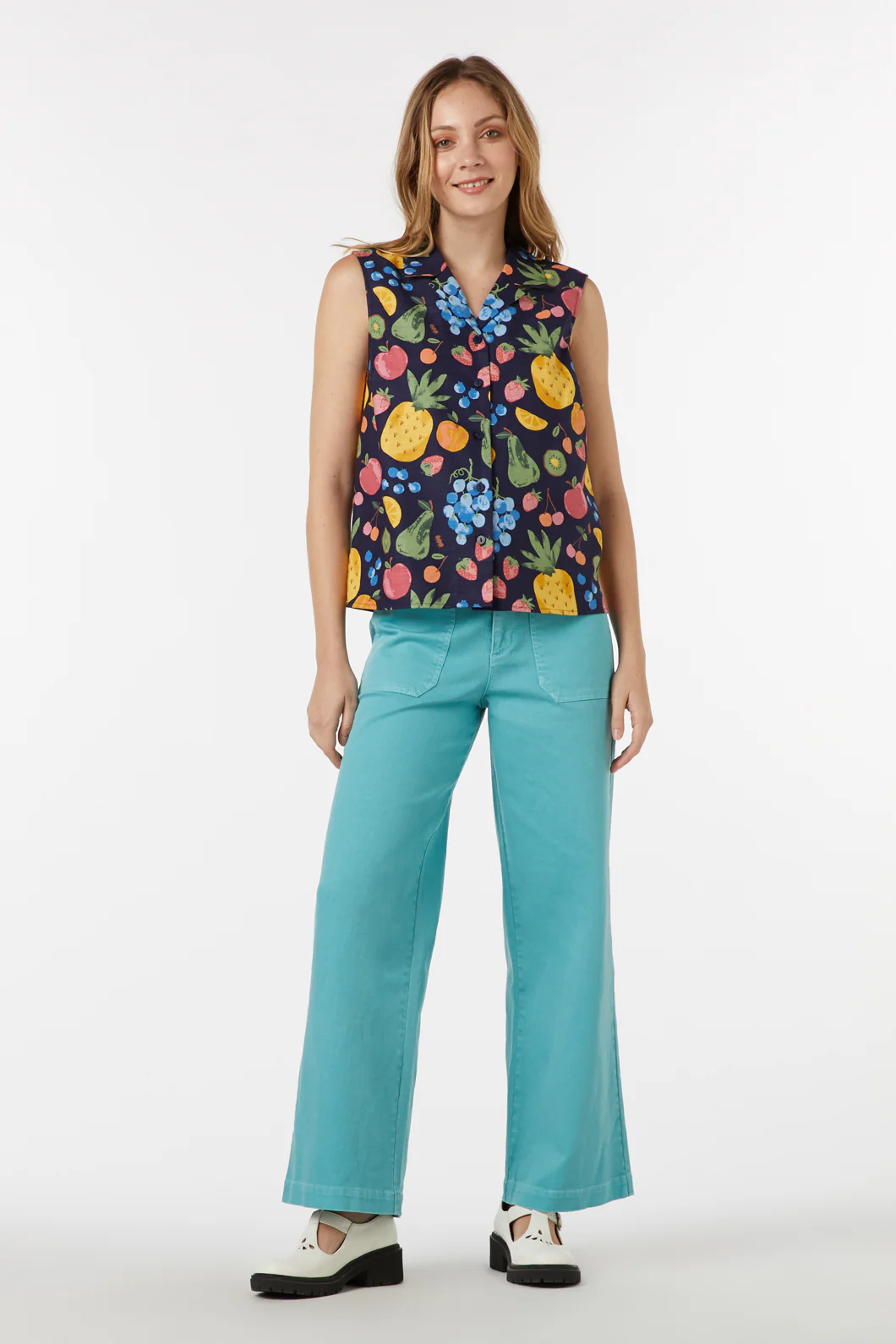 Fruit printed sleeveless blouse